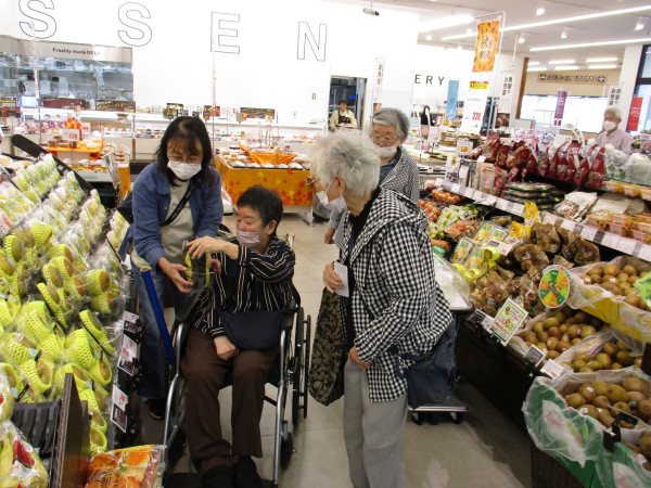 広々とした店内の通路は車椅子でも移動しやすく、利用者様は快適に買い物を楽しんでいらっしゃいました。陳列もきれいでわかりやすく、目的の品を見つけやすかったようです。