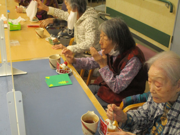 後半には職員や希望された利用者様で楽器を手に取りきよしこの夜を演奏され、とてもお上手でした!音楽の後は、お待ちかねのケーキの時間。紅茶と共にいつもとは違う少し特別な時間を過ごされたのではないでしょうか。